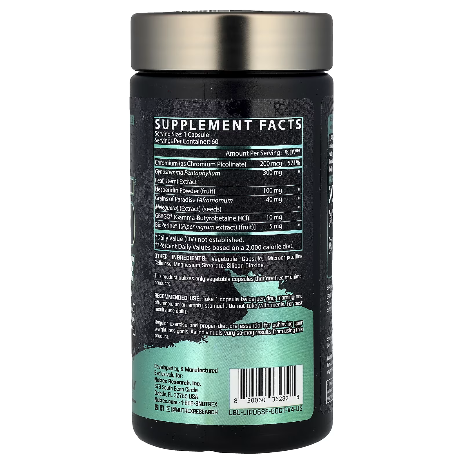 Nutrex® Lipo 6 Black Stim-Free Ultra Concentrate – Complément alimentaire minceur sans stimulants – 60 Capsules