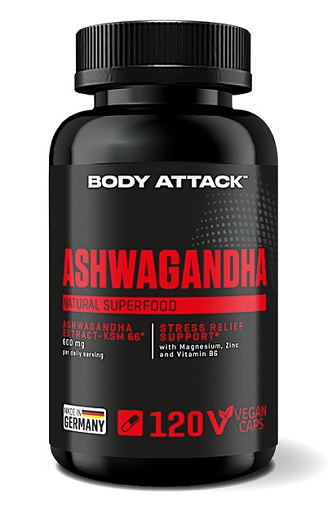 Body Attack® Ashwagandha 120 Capsules est un complément alimentaire naturel formulé à base d’Ashwagandha KSM-66, reconnu pour ses vertus adaptogènes et son action anti-stress. Chaque dose quotidienne apporte 600 mg d’extrait pur d’Ashwagandha, enrichi avec des minéraux essentiels tels que le zinc bisglycinate, le trimagnésium dicitrate et de la vitamine B6, pour soutenir votre bien-être global et vos performances physiques dans une formule 100 % vegan, sans additifs artificiels.