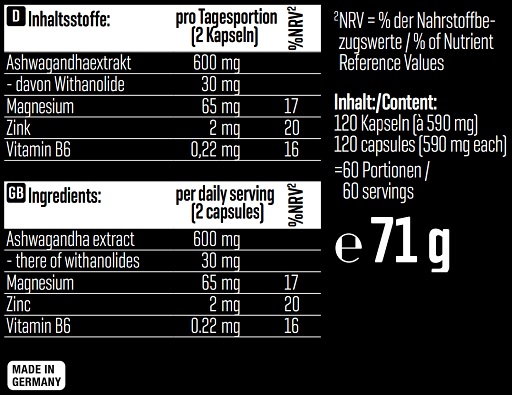 | Extrait d’Ashwagandha KSM-66 | 600 mg |