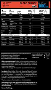 Ingrédients : Eau, acidifiant (acide citrique), arômes naturels, sel, fructose, édulcorants (acétylsulfame K, sucralose), oxyde de magnésium, colorants (quinoléine jaune, Allura Red AC), L-Carnitine, épaississant (gomme xanthane), conservateur (sorbate de potassium), vitamine B3 (nicotinamide), émulsifiant (mono- et diglycérides d’acides gras).