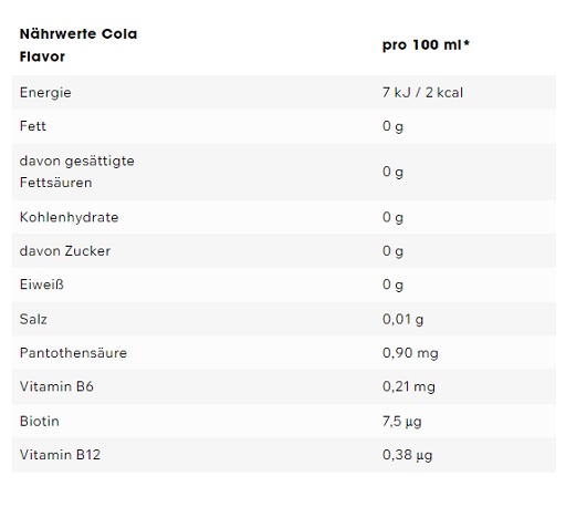 Liste complète des ingrédients : Eau, acide (acide lactique), glycérol, régulateur d’acidité (gluconate de sodium), arôme, concentré de jus de pomme 3%, stabilisateurs (gomme de caroube, gomme arabique, esters glycéryliques de résine de racine), édulcorants (acélsulfame K, sucralose), sel, colorants alimentaires (concentré de carotte et de cassis), conservateurs (sorbate de potassium, benzoate de sodium), vitamines (acide pantothénique, vitamine B6, biotine, vitamine B12), colorant (carotènes).