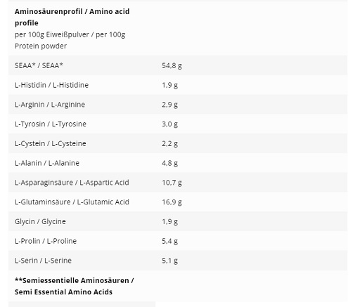 Mode d’emploi : Pour préparer un shaker, mélanger 30 g de poudre (une dose complète) dans 200 ml d’eau froide ou de lait écrémé. Agiter vigoureusement pendant 20 secondes jusqu’à obtention d’une texture homogène. Il est recommandé de consommer 1 à 3 shakers par jour, idéalement répartis avant ou après l’effort physique, ou selon les besoins protéiques individuels.