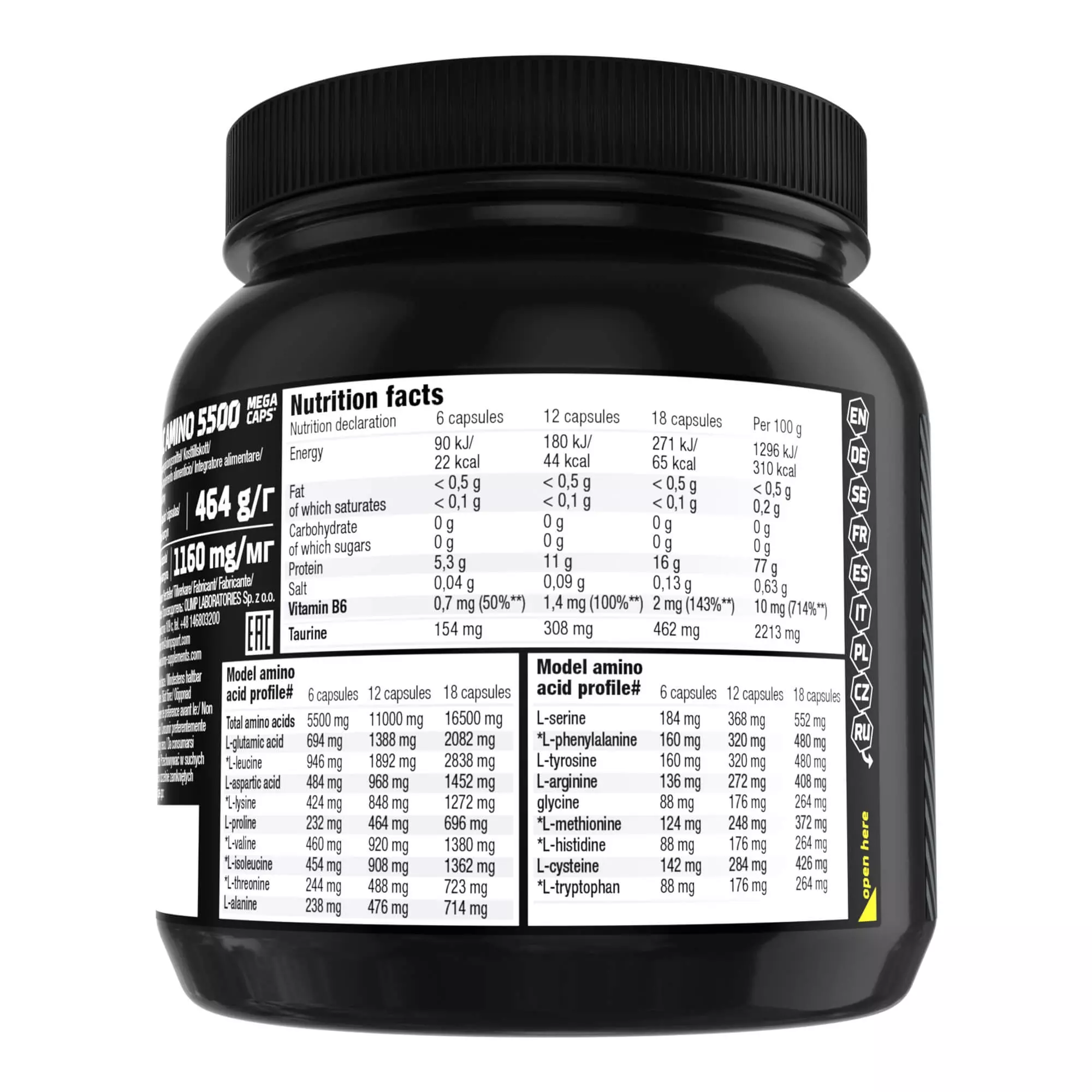 Olimp® Anabolic Amino 5500 Mega Caps est un complément alimentaire en capsules conçu pour apporter un complexe complet d’acides aminés essentiels issus de peptides et de formes libres, avec une haute concentration de protéines de lactosérum hydrolysées. Ce produit premium, composé également de BCAA (acides aminés à chaîne ramifiée), de taurine et de vitamine B6, est spécialement formulé pour soutenir la croissance et le maintien de la masse musculaire chez les sportifs et les personnes avec des besoins accrus en protéines. Chaque boîte contient 400 capsules, offrant une solution pratique et efficace pour optimiser votre apport en acides aminés de qualité supérieure.