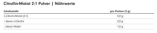 | L-Citrulline Malate (2:1) | 5 000 mg | 3 333 mg de L-Citrulline active |