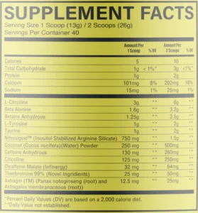 Ce pré-workout haut de gamme favorise une hydration cellulaire optimale, une augmentation du flux sanguin pour une meilleure oxygénation des muscles, ainsi qu’une stimulation de l’énergie mentale et physique. Les composants comme la Glycersize™ contribuent à une meilleure hydratation musculaire, tandis que la L-Citrulline et l’Arginine Nitrate augmentent l’endurance et la vasodilatation, facilitant l’apport nutritif dans les tissus musculaires durant l’effort. La Betaine Anhydrous aide à améliorer la force et la puissance musculaire, tandis que la caféine et les nootropiques naturels comme la L-Tyrosine et la Citicoline optimisent la vigilance et la concentration.