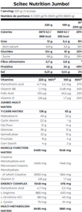 Scitec® Jumbo Gainer 3520g est un complément alimentaire nutritionnel premium conçu spécialement pour les personnes souhaitant augmenter rapidement leur masse musculaire et leur force. Il s’agit d’un gainer hypercalorique de haute qualité, formulé avec une matrice anabolique puissante et un complexe ultracomplexe de glucides, incluant notamment Vitargo®, Palatinose, flocons d’avoine et amidon de maïs cireux. Chaque portion apporte environ 884 kcal, avec 53 g de protéines multi-sources animales, 135 g de glucides et 14 g de lipides, ainsi qu’un complexe créatine multi-formes (5 types) et un blend d’acides aminés incluant BCAA et glutamine pour maximiser récupération et performance.