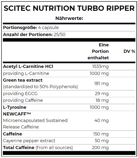 Scitec® Turbo Ripper – Complément Alimentaire Thermogénique en Capsules (100 unités)