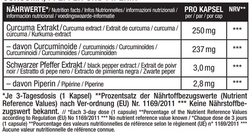 | Extrait de Curcuma (Curcuma longa) standardisé à 95% curcuminoïdes | 250 mg |