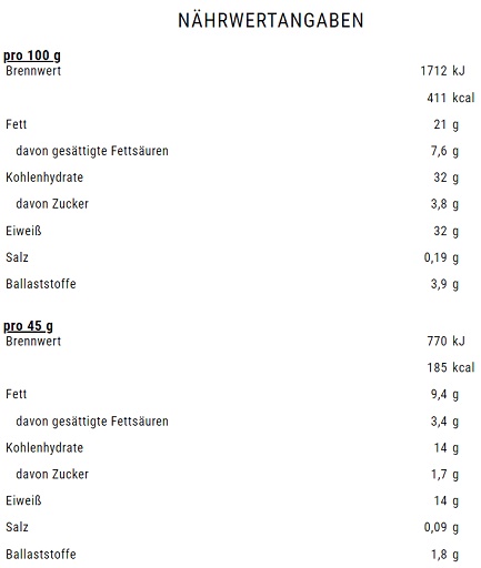 Ingrédients et valeurs nutritionnelles détaillées (par barre 45g)